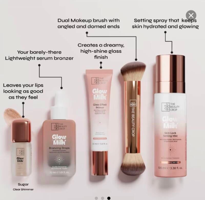 Glow milk duo complexion brush, it’s fine a nice addition to this bundle.